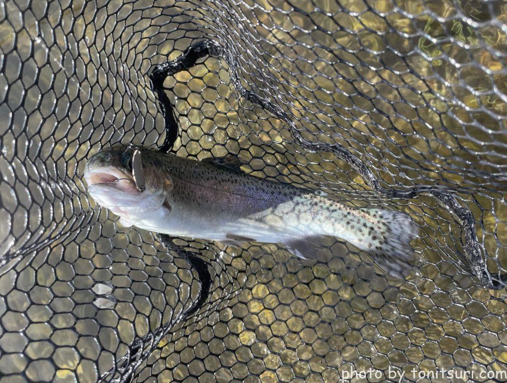 スプーンはBF0.5gやハイバースト0.8g、ノアjr0.9gなど1g以下のスプーンで水面直下を引いてきて魚が咥えたら合わせるサイトの釣りです。
