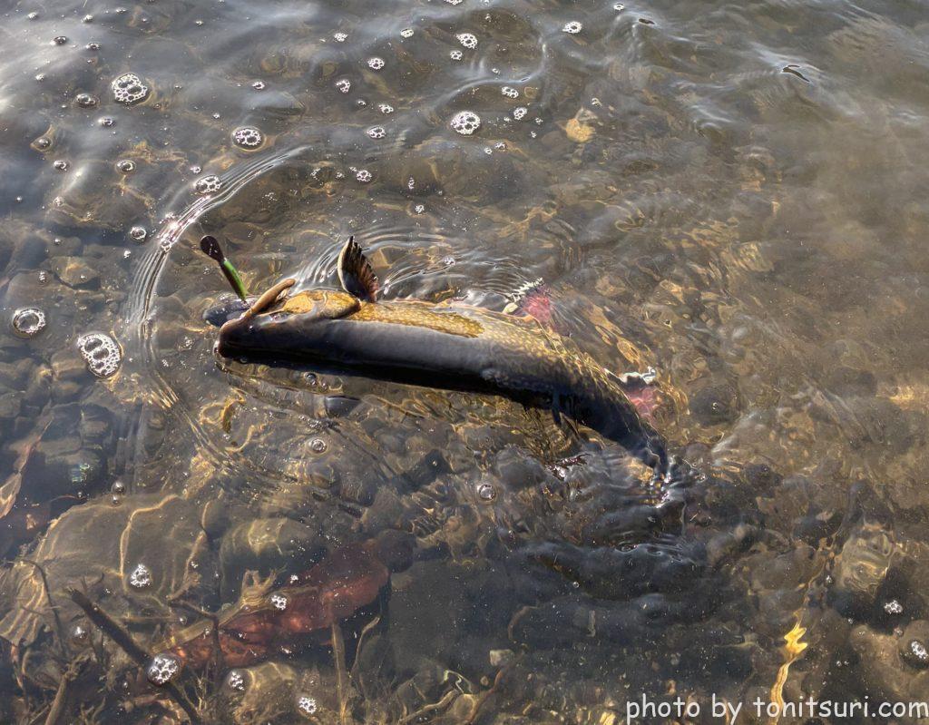 足元で良型ブルックがひったくっていきました。