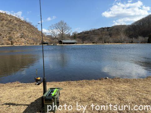 前回の氷上ワカサギ釣りは惨敗だったのでエリアトラウトで癒されにきました。